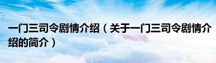 大家好,一門三司令劇情介紹,關于一門三司令劇情介紹的簡介很多人還不知道,現在讓我們一起來看看吧!
