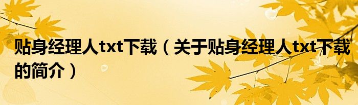 本文關于貼身經理人txt下載的簡介就講解完畢,希望對大家有所幫助。
