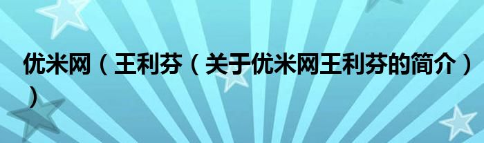 本文關(guān)于優(yōu)米網(wǎng) 王利芬的簡(jiǎn)介就講解完畢,希望對(duì)大家有所幫助。
