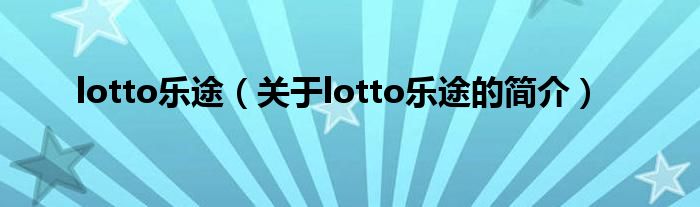 大家好,lotto樂途,關于lotto樂途的簡介很多人還不知道,現在讓我們一起來看看吧!
