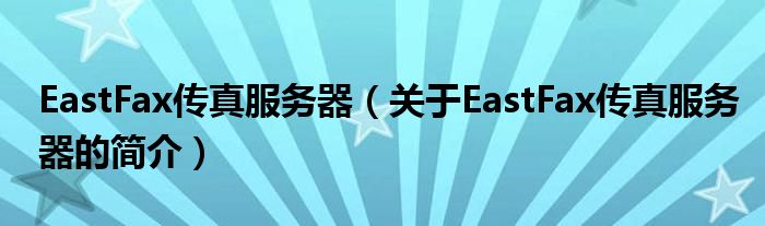 本文關于EastFax傳真服務器的簡介就講解完畢,希望對大家有所幫助。