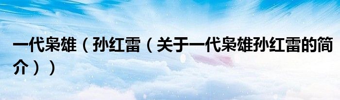 大家好,一代梟雄 孫紅雷,關(guān)于一代梟雄 孫紅雷的簡(jiǎn)介很多人還不知道,現(xiàn)在讓我們一起來(lái)看看吧!
