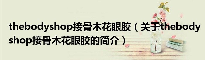 本文關于thebodyshop接骨木花眼膠的簡介就講解完畢,希望對大家有所幫助。