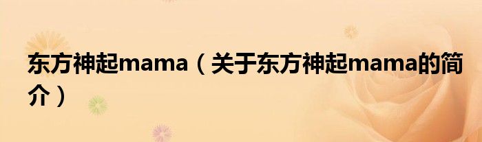 本文關于東方神起mama的簡介就講解完畢,希望對大家有所幫助。