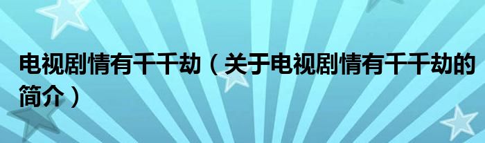 大家好,電視劇情有千千劫,關(guān)于電視劇情有千千劫的簡介很多人還不知道,現(xiàn)在讓我們一起來看看吧!