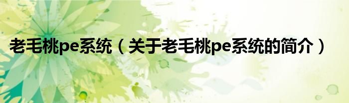大家好,老毛桃pe系統(tǒng),關(guān)于老毛桃pe系統(tǒng)的簡介很多人還不知道,現(xiàn)在讓我們一起來看看吧!