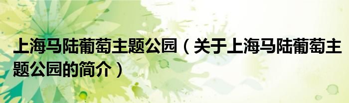本文關(guān)于上海馬陸葡萄主題公園的簡(jiǎn)介就講解完畢,希望對(duì)大家有所幫助。