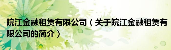 本文關于皖江金融租賃有限公司的簡介就講解完畢,希望對大家有所幫助。
