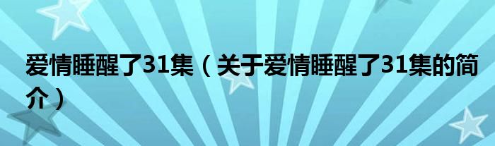 本文關于愛情睡醒了31集的簡介就講解完畢,希望對大家有所幫助。