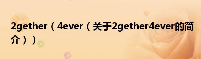 大家好,2gether 4ever,關(guān)于2gether 4ever的簡(jiǎn)介很多人還不知道,現(xiàn)在讓我們一起來(lái)看看吧!