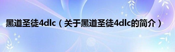 本文關于黑道圣徒4dlc的簡介就講解完畢,希望對大家有所幫助。
