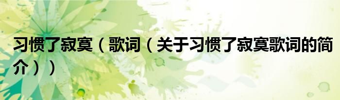 本文關(guān)于習(xí)慣了寂寞 歌詞的簡介就講解完畢,希望對大家有所幫助。