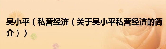 本文關(guān)于吳小平 私營經(jīng)濟(jì)的簡介就講解完畢,希望對大家有所幫助。