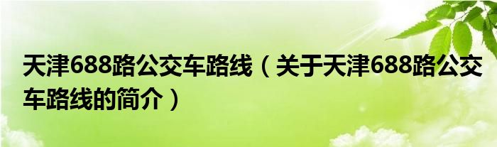 本文關于天津688路公交車路線的簡介就講解完畢,希望對大家有所幫助。