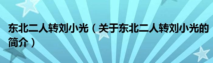大家好,東北二人轉劉小光,關于東北二人轉劉小光的簡介很多人還不知道,現在讓我們一起來看看吧!