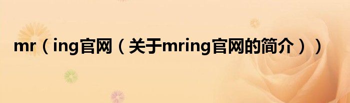 本文關(guān)于mr ing官網(wǎng)的簡介就講解完畢,希望對大家有所幫助。