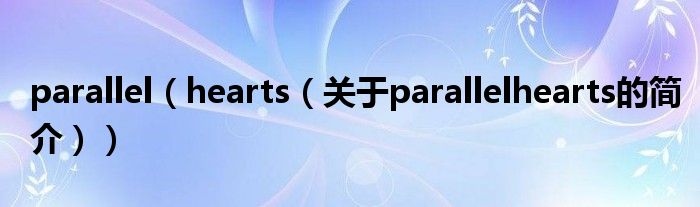 大家好,parallel hearts,關于parallel hearts的簡介很多人還不知道,現在讓我們一起來看看吧!