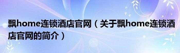 本文關于飄home連鎖酒店官網的簡介就講解完畢,希望對大家有所幫助。