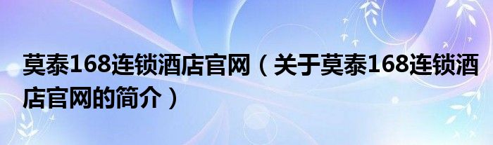 本文關(guān)于莫泰168連鎖酒店官網(wǎng)的簡(jiǎn)介就講解完畢,希望對(duì)大家有所幫助。