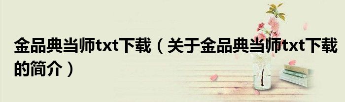 本文關(guān)于金品典當(dāng)師txt下載的簡(jiǎn)介就講解完畢,希望對(duì)大家有所幫助。