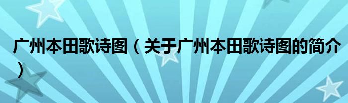 本文關(guān)于廣州本田歌詩圖的簡介就講解完畢,希望對大家有所幫助。