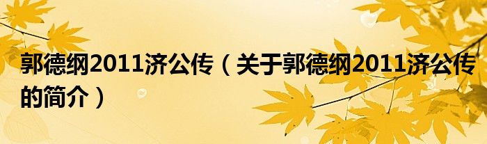 本文關于郭德綱2011濟公傳的簡介就講解完畢,希望對大家有所幫助。