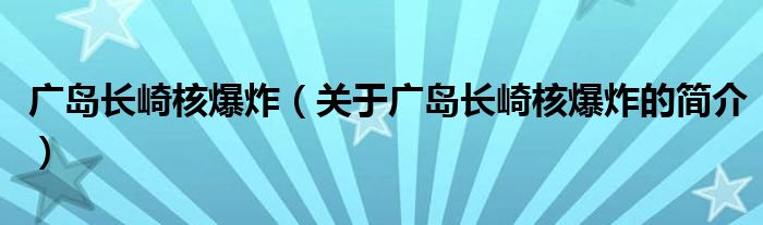 本文關(guān)于廣島長崎核爆炸的簡介就講解完畢,希望對大家有所幫助。