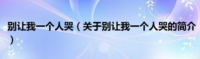 本文關(guān)于別讓我一個(gè)人哭的簡(jiǎn)介就講解完畢,希望對(duì)大家有所幫助。