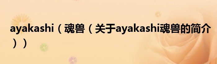 本文關于ayakashi 魂獸的簡介就講解完畢,希望對大家有所幫助。
