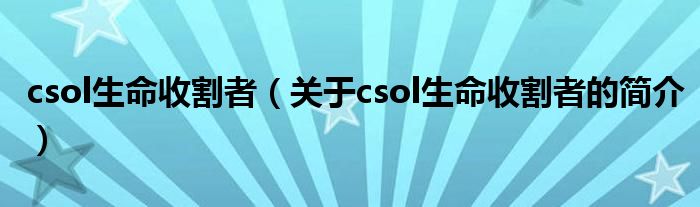 大家好,csol生命收割者,關于csol生命收割者的簡介很多人還不知道,現在讓我們一起來看看吧!