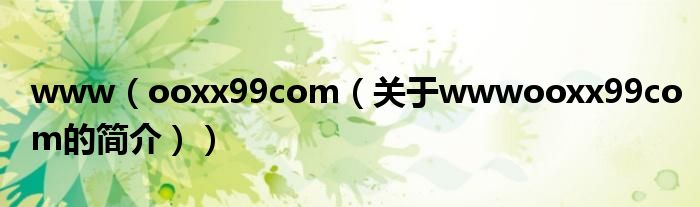 本文關(guān)于www ooxx99 com的簡介就講解完畢,希望對大家有所幫助。