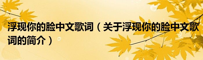 大家好,浮現你的臉中文歌詞,關于浮現你的臉中文歌詞的簡介很多人還不知道,現在讓我們一起來看看吧!