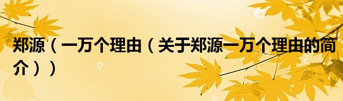 本文關于鄭源 一萬個理由的簡介就講解完畢,希望對大家有所幫助。