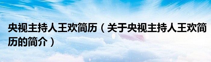 大家好,央視主持人王歡簡歷,關于央視主持人王歡簡歷的簡介很多人還不知道,現在讓我們一起來看看吧!