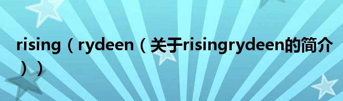 大家好,rising rydeen,關于rising rydeen的簡介很多人還不知道,現在讓我們一起來看看吧!