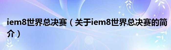 本文關于iem8世界總決賽的簡介就講解完畢,希望對大家有所幫助。