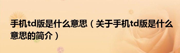 本文關于手機td版是什么意思的簡介就講解完畢,希望對大家有所幫助。