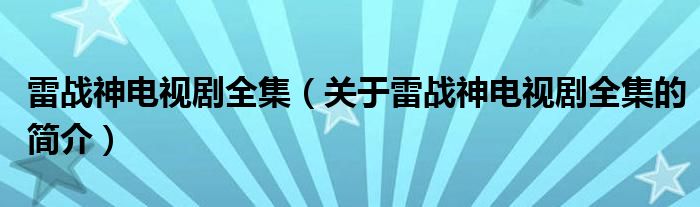 本文關(guān)于雷戰(zhàn)神電視劇全集的簡介就講解完畢,希望對大家有所幫助。