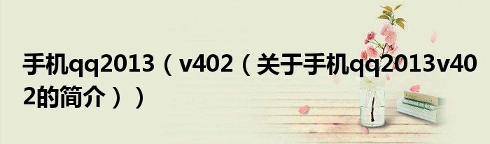 本文關于手機qq2013 v4 0 2的簡介就講解完畢,希望對大家有所幫助。