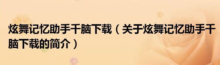 本文關于炫舞記憶助手千腦下載的簡介就講解完畢,希望對大家有所幫助。