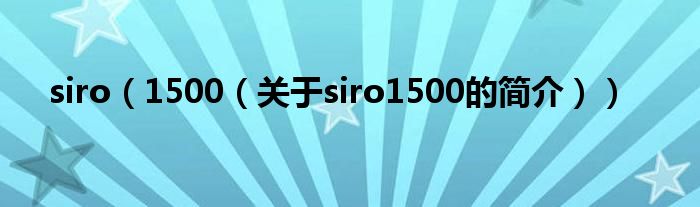 本文關(guān)于siro 1500的簡(jiǎn)介就講解完畢,希望對(duì)大家有所幫助。