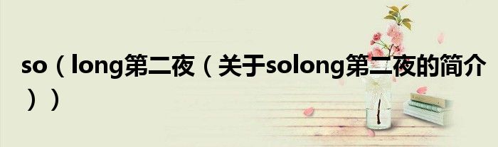 大家好,so long 第二夜,關(guān)于so long 第二夜的簡介很多人還不知道,現(xiàn)在讓我們一起來看看吧!