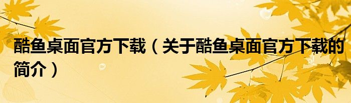 本文關于酷魚桌面官方下載的簡介就講解完畢,希望對大家有所幫助。