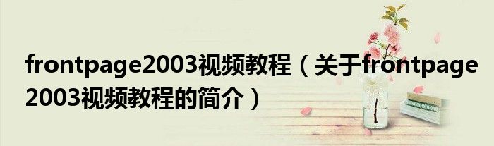 本文關于frontpage2003視頻教程的簡介就講解完畢,希望對大家有所幫助。