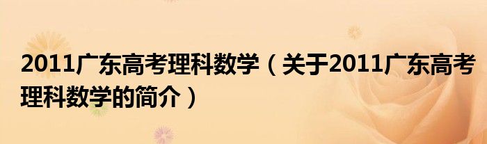 本文關(guān)于2011廣東高考理科數(shù)學(xué)的簡(jiǎn)介就講解完畢,希望對(duì)大家有所幫助。