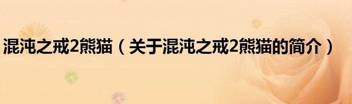 本文關于混沌之戒2熊貓的簡介就講解完畢,希望對大家有所幫助。