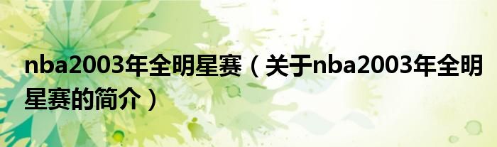本文關于nba2003年全明星賽的簡介就講解完畢,希望對大家有所幫助。