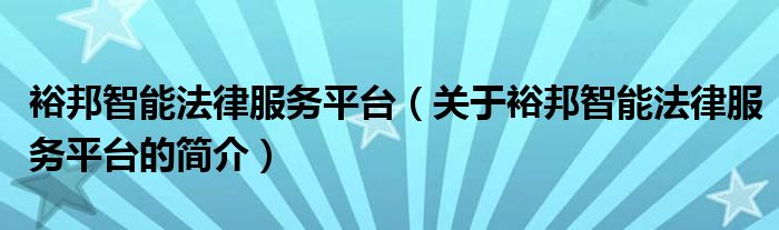 本文關于裕邦智能法律服務平臺的簡介就講解完畢,希望對大家有所幫助。