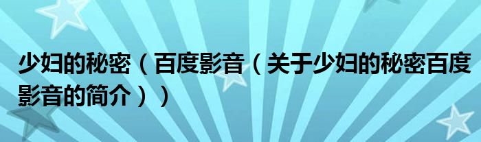 本文關于少婦的秘密 百度影音的簡介就講解完畢,希望對大家有所幫助。