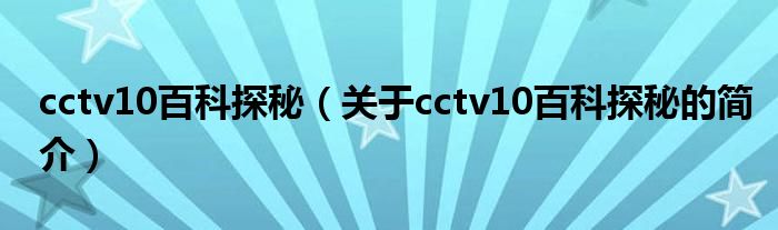 本文關于cctv10百科探秘的簡介就講解完畢,希望對大家有所幫助。